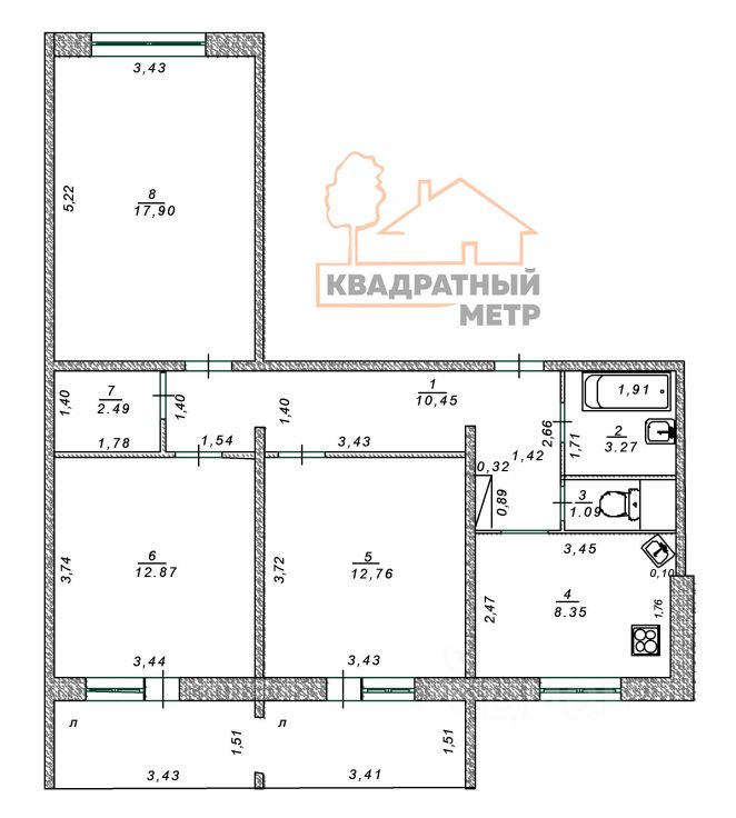Информация о квартире: Комнат в квартире: 3 Общая площадь: 69,1 кв.м. Жилая площадь: 43,5 кв.м. Площадь кухни: 8,3 кв.м.