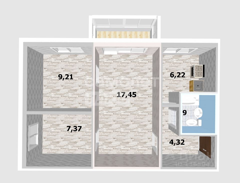 Арт. 114687387 Трехкомнатная квартира площадью 49 кв. м с учетом балкона, в тихом, утопающем в зелени районе рядом с лучшим парком в Заволжье им. ''40-летия ВЛКСМ''.