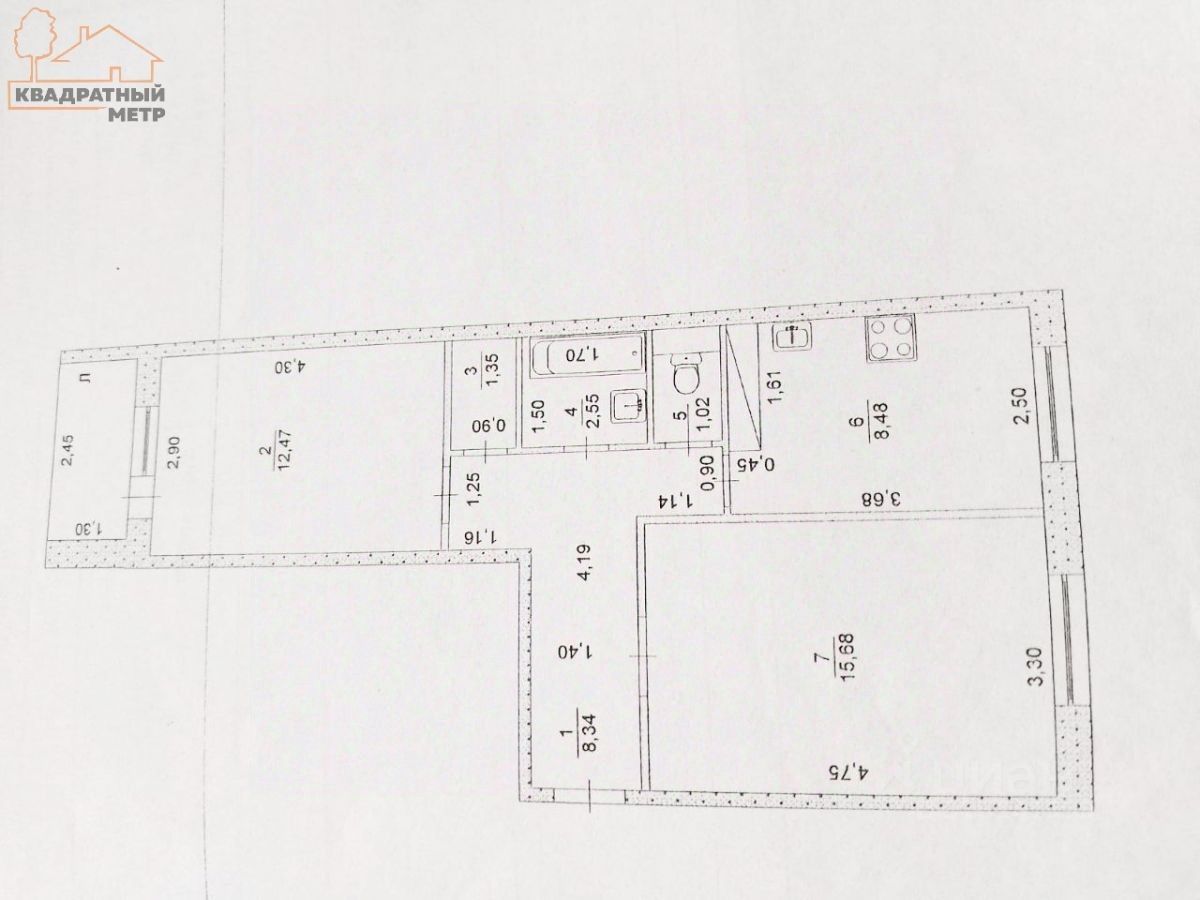 Информация о квартире: Комнат в квартире: 2 Общая площадь: 50.3 кв.м. Жилая площадь: 28.6 кв.м. Площадь кухни: 8.5 кв.м. Этаж: 8 Квартира не угловая Санузел: раздельный Окна: дерево Двери: дерево Балкон: застеклен деревом Ремонт: без ремонта