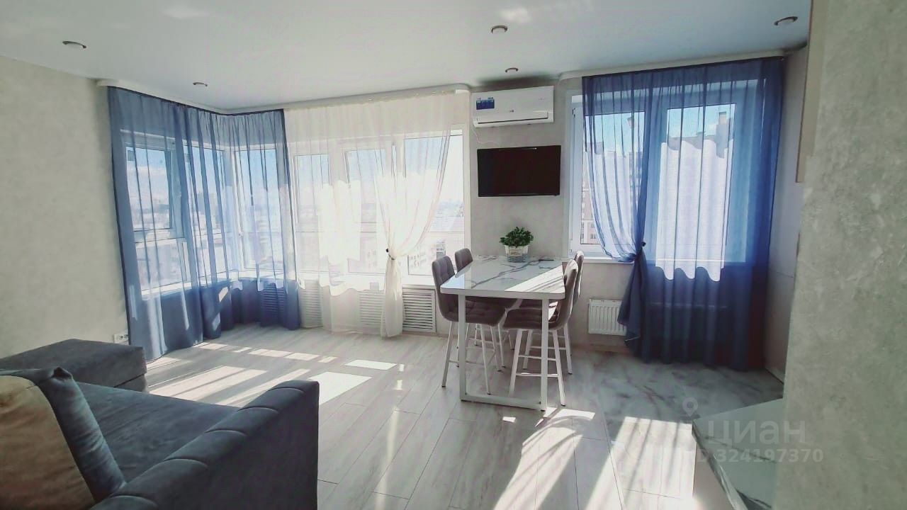Квартира в отличном состоянии, сделан дизайнерский ремонт. Во всей квартире установлены пластиковые окна. Филенчатые межкомнатные двери в едином стиле. На полу уложен ламинат высокого качества, и напольная плитка, потолки натяжные с точечными светильниками. Совмещенный санузел под ключ, кафель. Входная бронированная дверь.